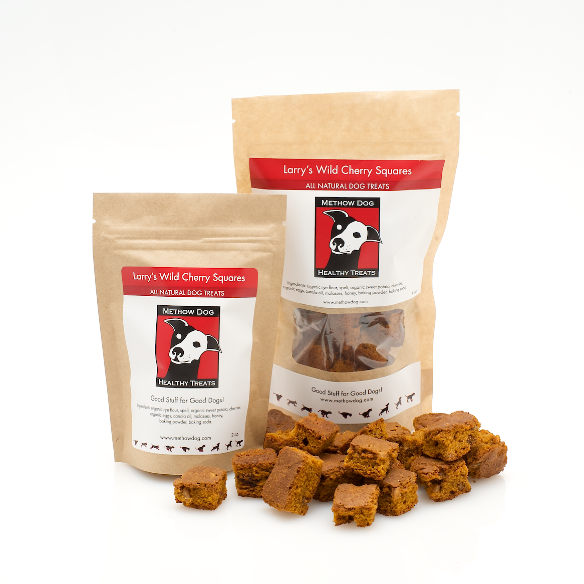Larry’s Wild Cherry Squares are the newest delicious treat from Methow Dog. They are very tasty, naturally nutritious, soft square made with Bluebird Grains organic rye, grown in the Methow Valley. A fun combination of anti-oxidant rich cherries, sweet potato and spelt. Hints of molasses and honey round out this soft-baked treat for your dog.