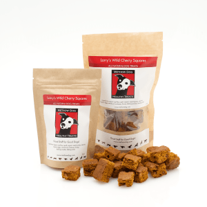 We’re thrilled to have Larry’s Wild Cherry Squares as Treat-of-the-Month at Smiley Dog. They offer Free Home Delivery of Pet Food in the Seattle area!