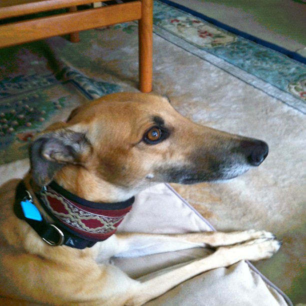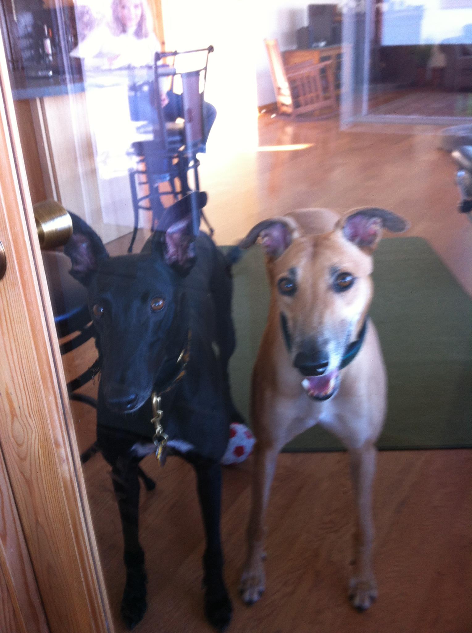 Poor Tiger was so despondent and didn’t want to be an only dog. So we took him out to Greyhound Pets Inc. so he could meet a new friend. Out of all the lovely dogs there, Tiger chose the beautiful Truman.