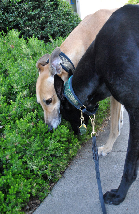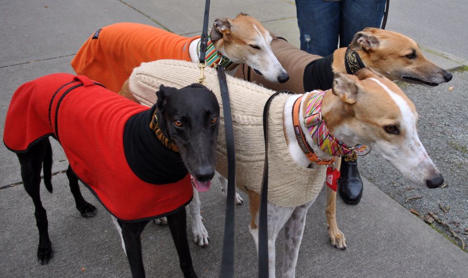 Tiger and Truman are energetic young boys who love their daily adventures at Seattle Center. Especially when they run into other greyhound friends.