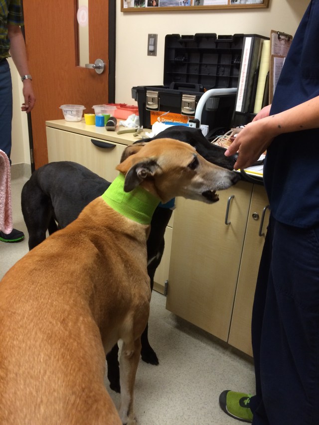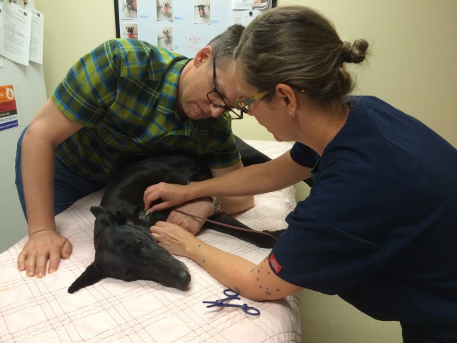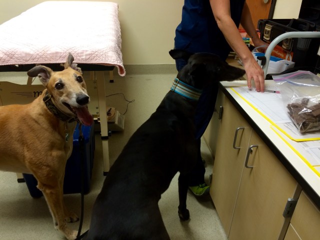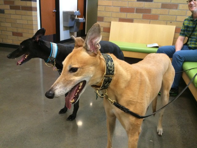 Greyhound blood has a higher red blood cell count, lower white blood cell count and lower platelet count than other dog breeds. DoveLewis very carefully screens all their volunteer blood donors, both during the initial consultation and tests the dog’s blood before each donation to make sure everything looks good and they can safely donate that day. Tiger and Truman passed with flying colors!