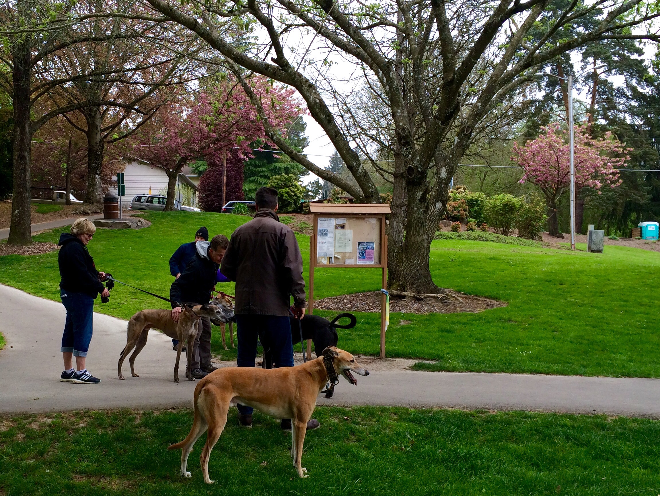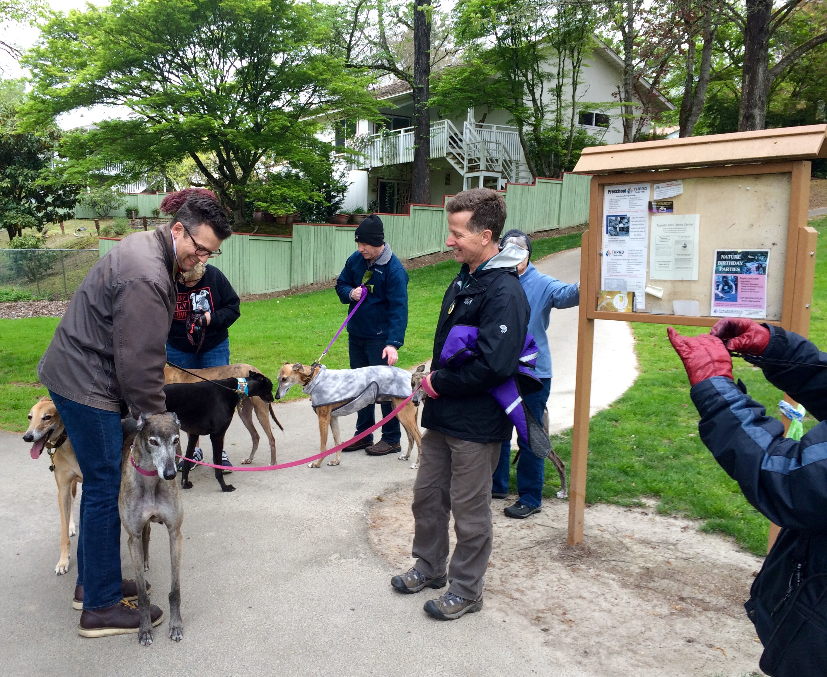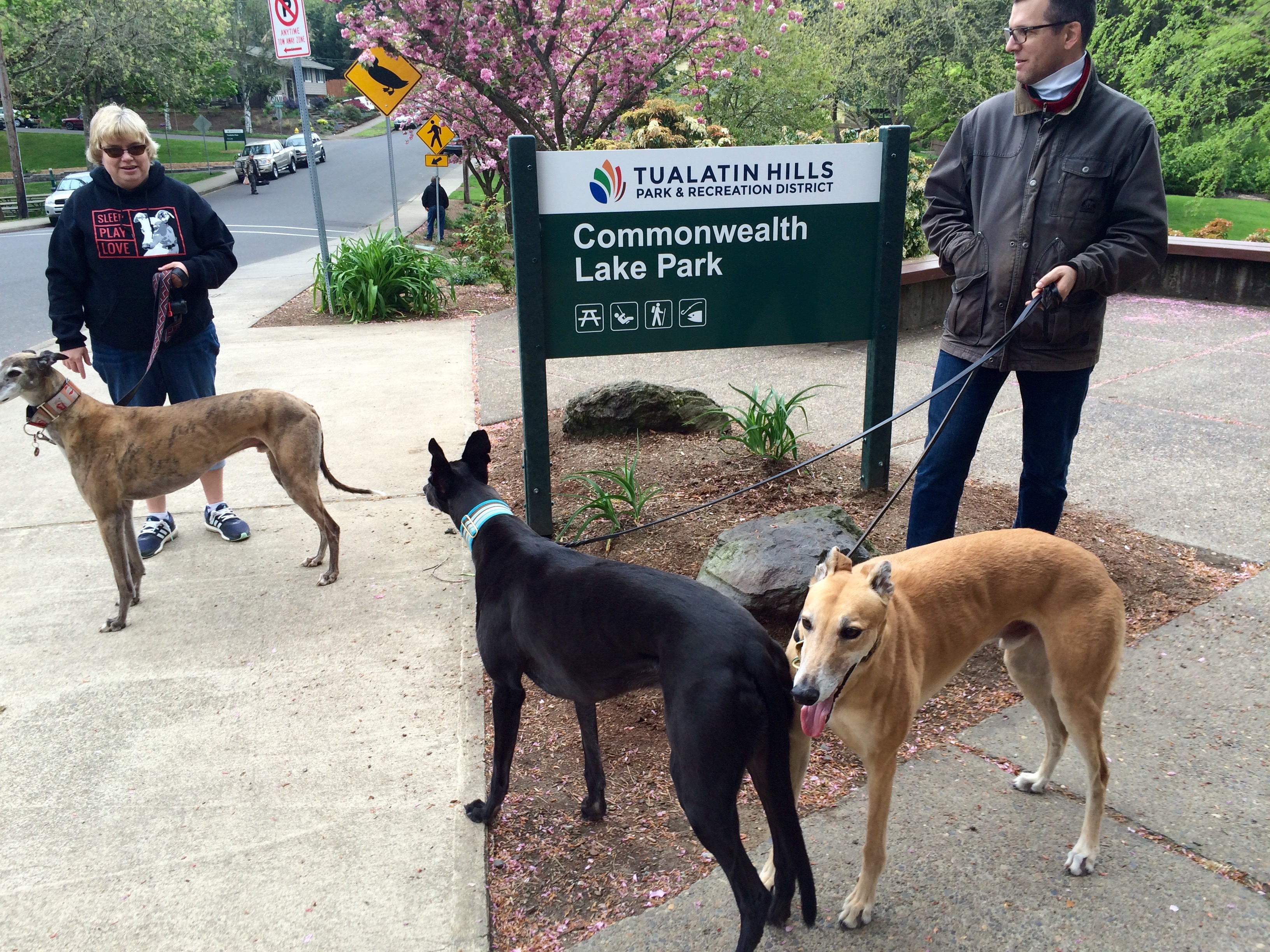 We love a win-win-win, and that’s what happens every month for Greyhound owners in Portland. The Greyhound Walking Club provides a monthly social outing for hounds and their humans. This month’s walk was at Commonwealth Lake Park in Beaverton.