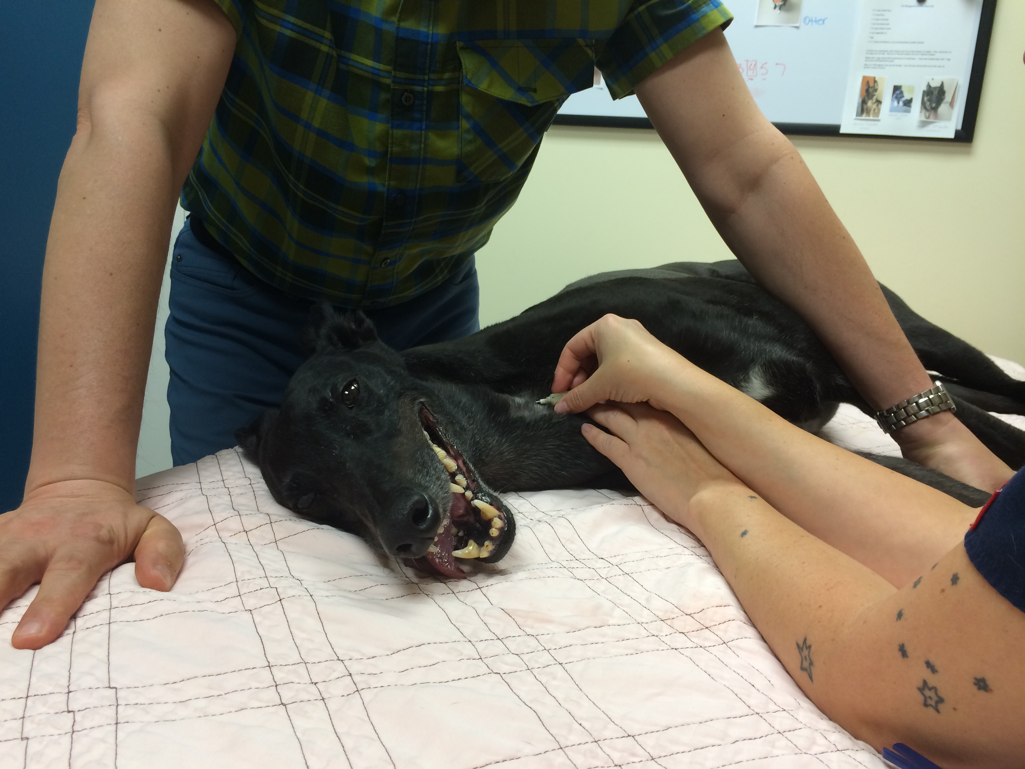 He came through it like a champ, as always. And, as always, he charmed our vet and the entire staff at Cascade Veterinary Clinic.