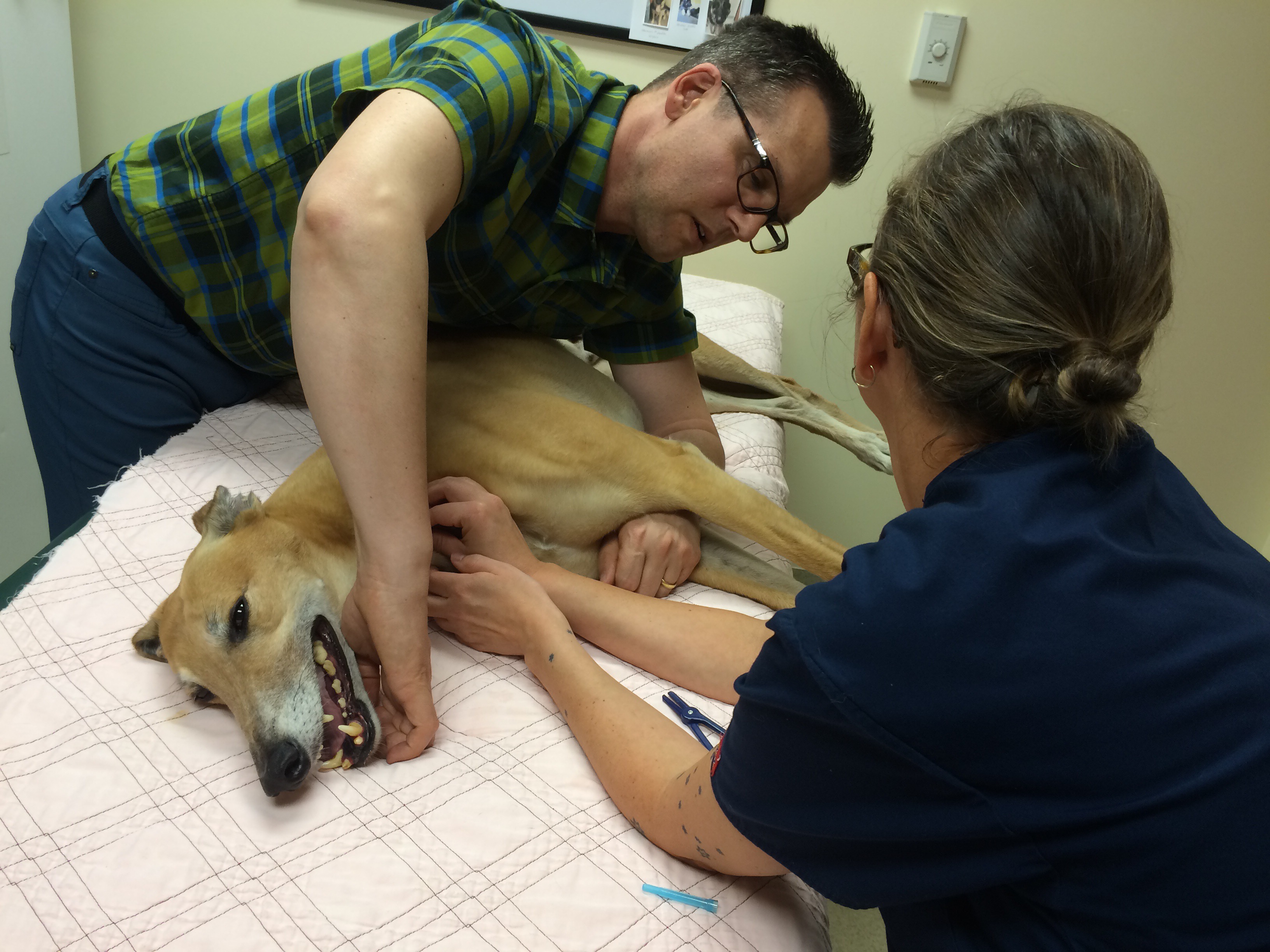 Greyhound blood has a higher red blood cell count, lower white blood cell count and lower platelet count than other dog breeds. DoveLewis very carefully screens all their volunteer blood donors, both during the initial consultation and tests the dog’s blood before each donation to make sure everything looks good and they can safely donate that day. Tiger and Truman passed with flying colors!