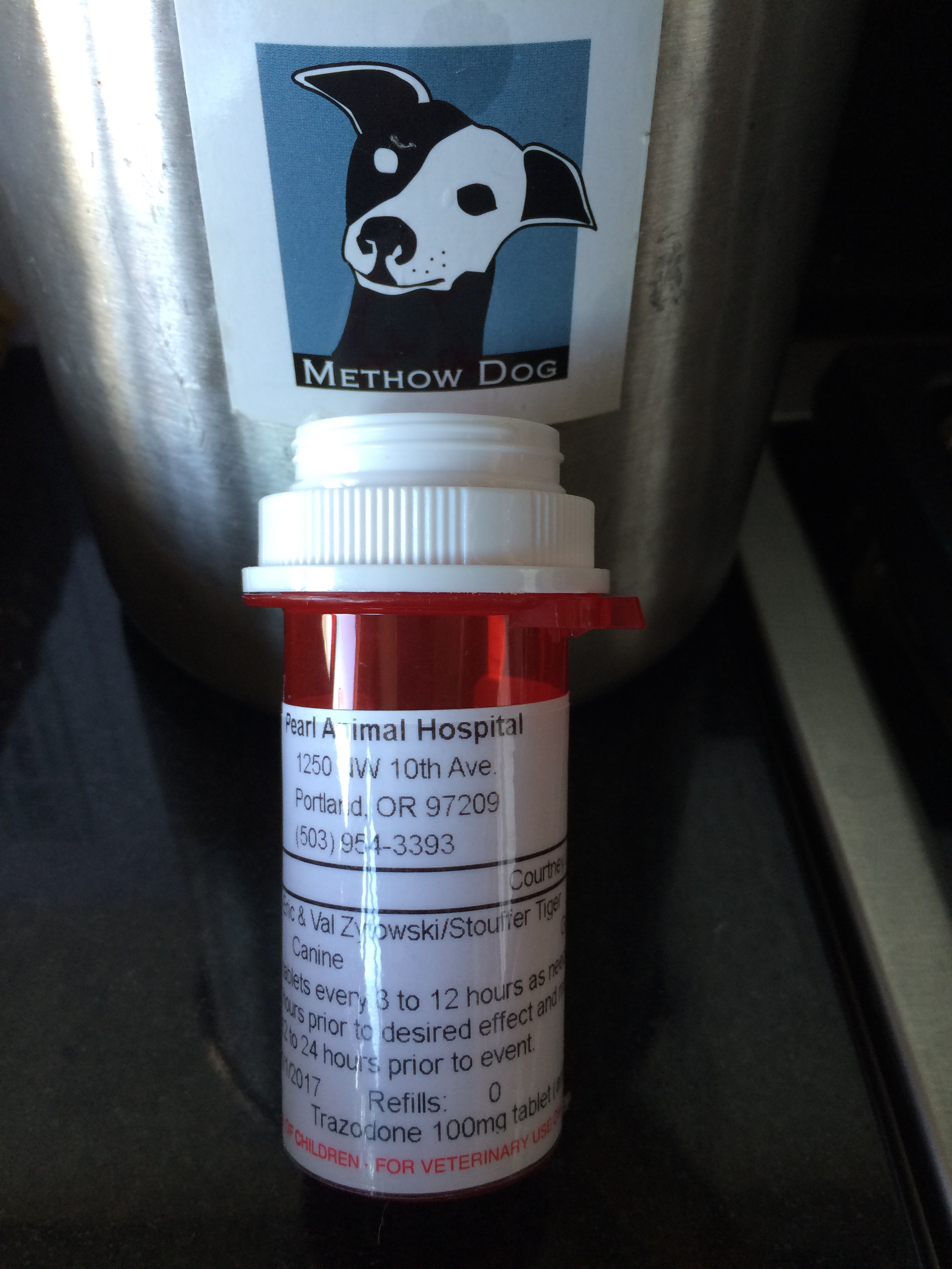 Our Portland neighborhood has turned out to be almost as noisy as our old Seattle neighborhood near the Space Needle, much to Tiger’s chagrin. So we thought some anti-anxiety meds might help him get through the upcoming night of ‘bombs bursting in air.’